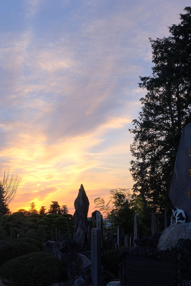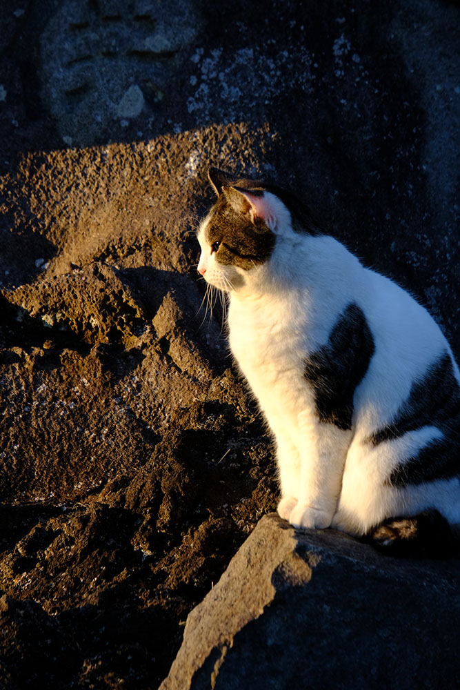額堂裏の外周道にもよく猫がいます。ここでは夕焼けと猫の写真も撮ることが出来ました。