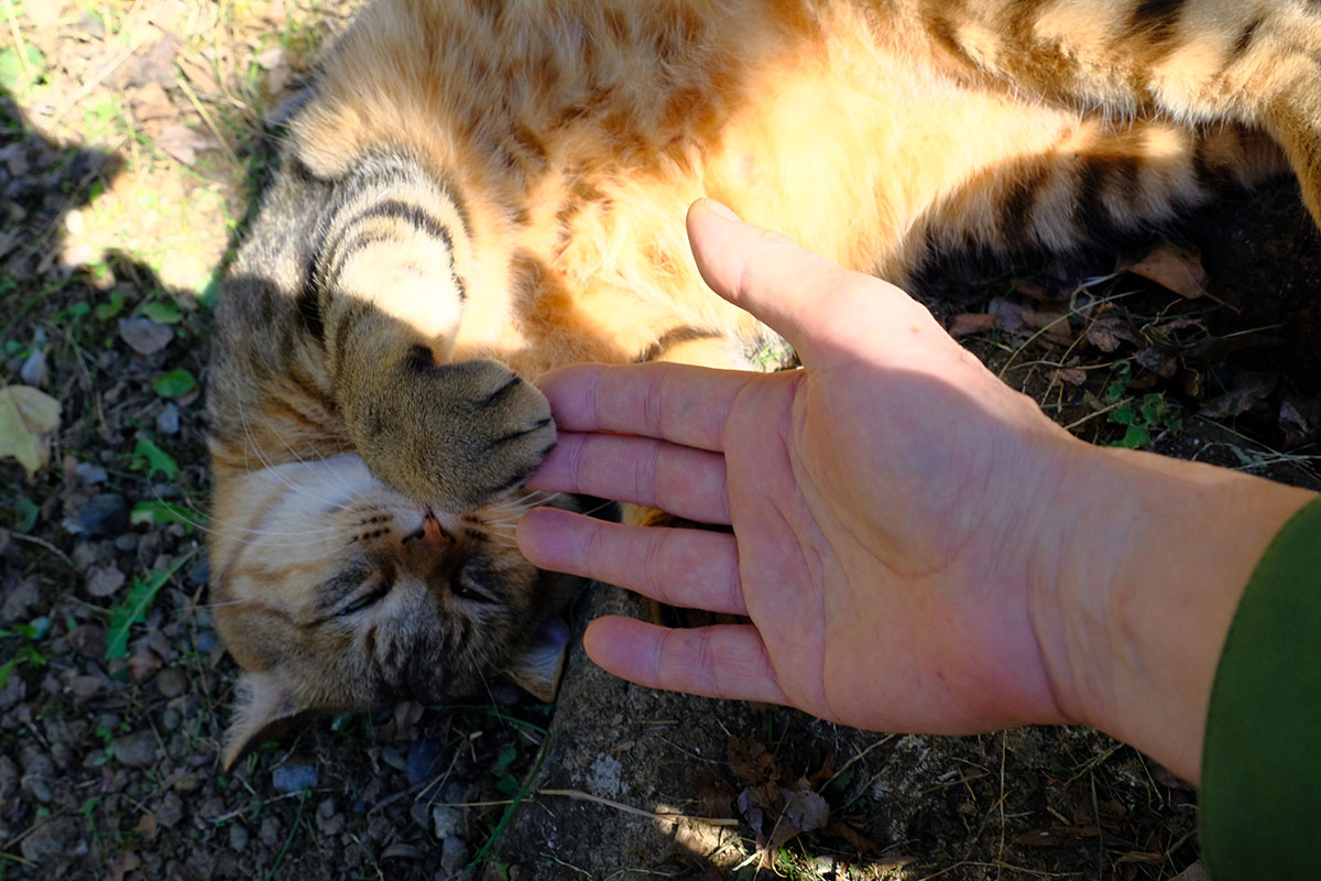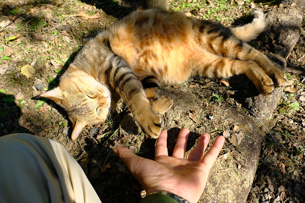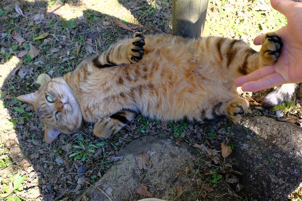 公園入り口の藤棚に人懐っこい猫がいてなでさせてくれました。もふもふなネコちゃんで握手!それからジャンケンしたらパーで勝ちました!?(^O^) でも、それきりになってしまった(汗) 負けておけば良かったかな?(^^;)