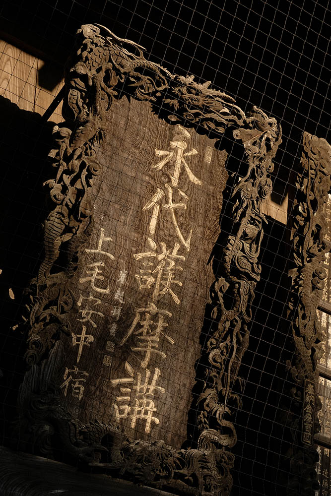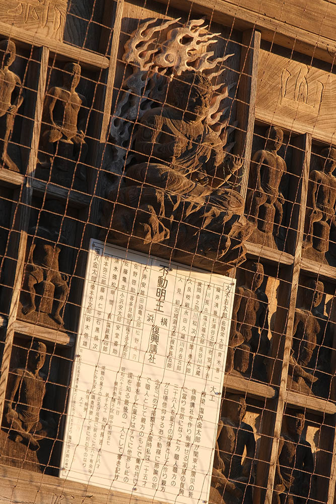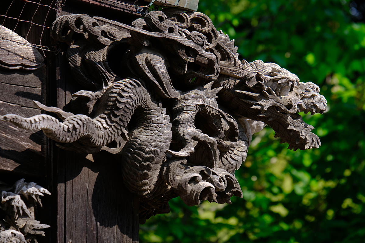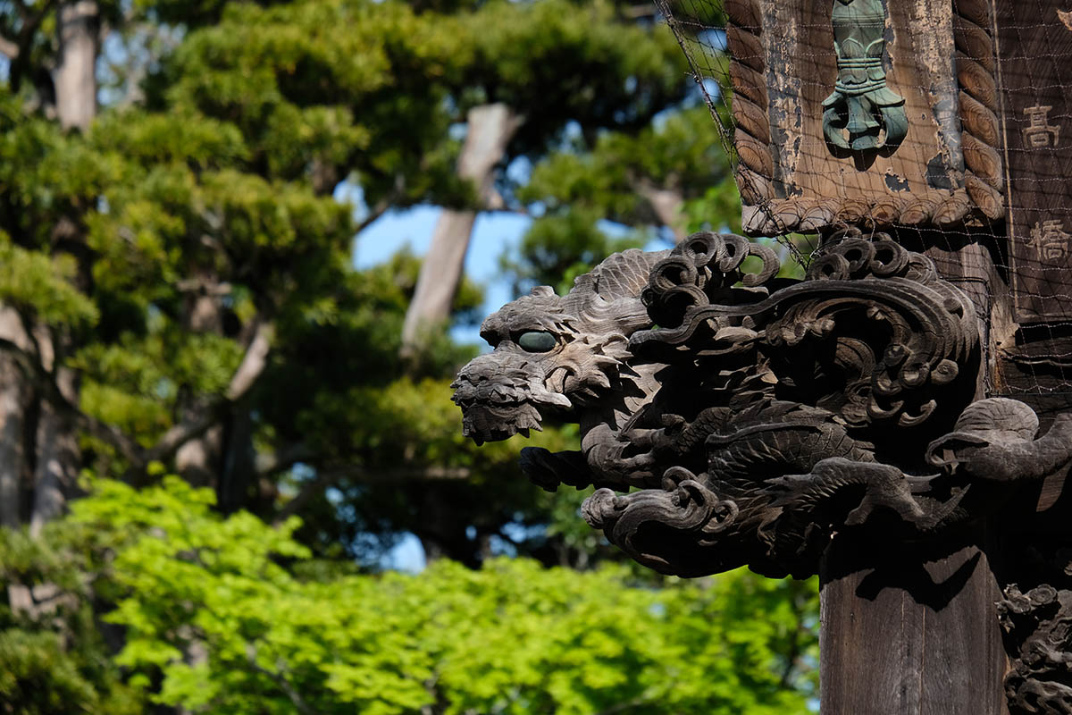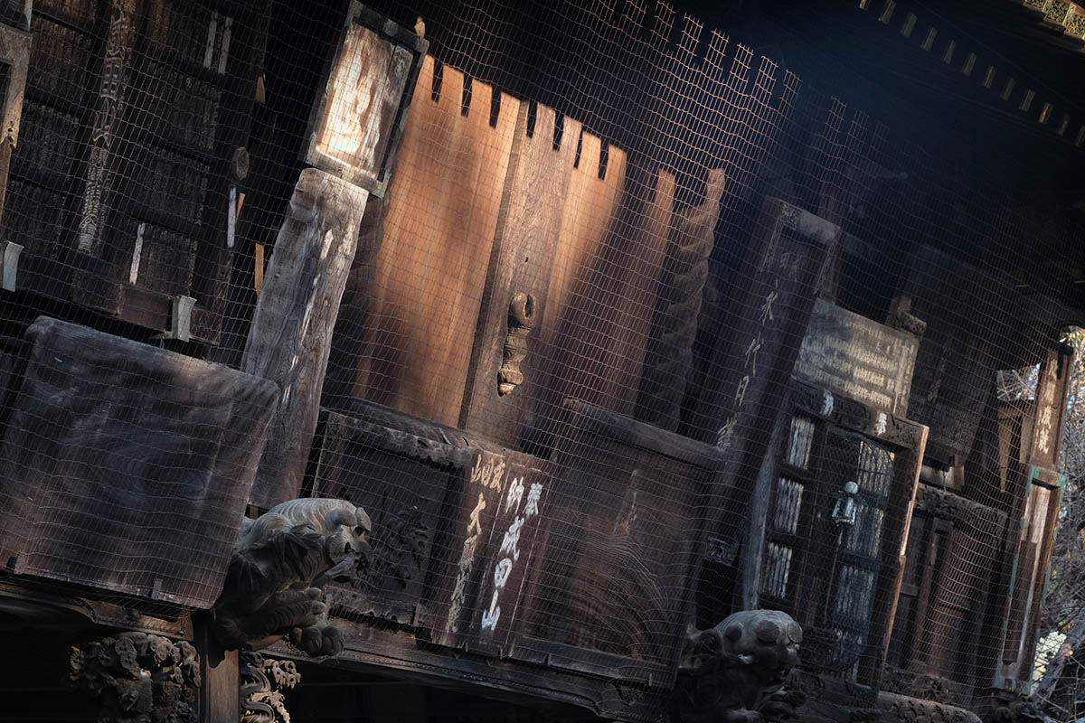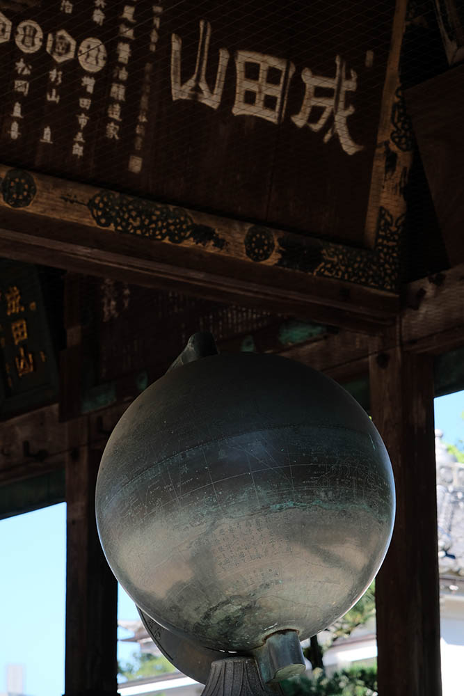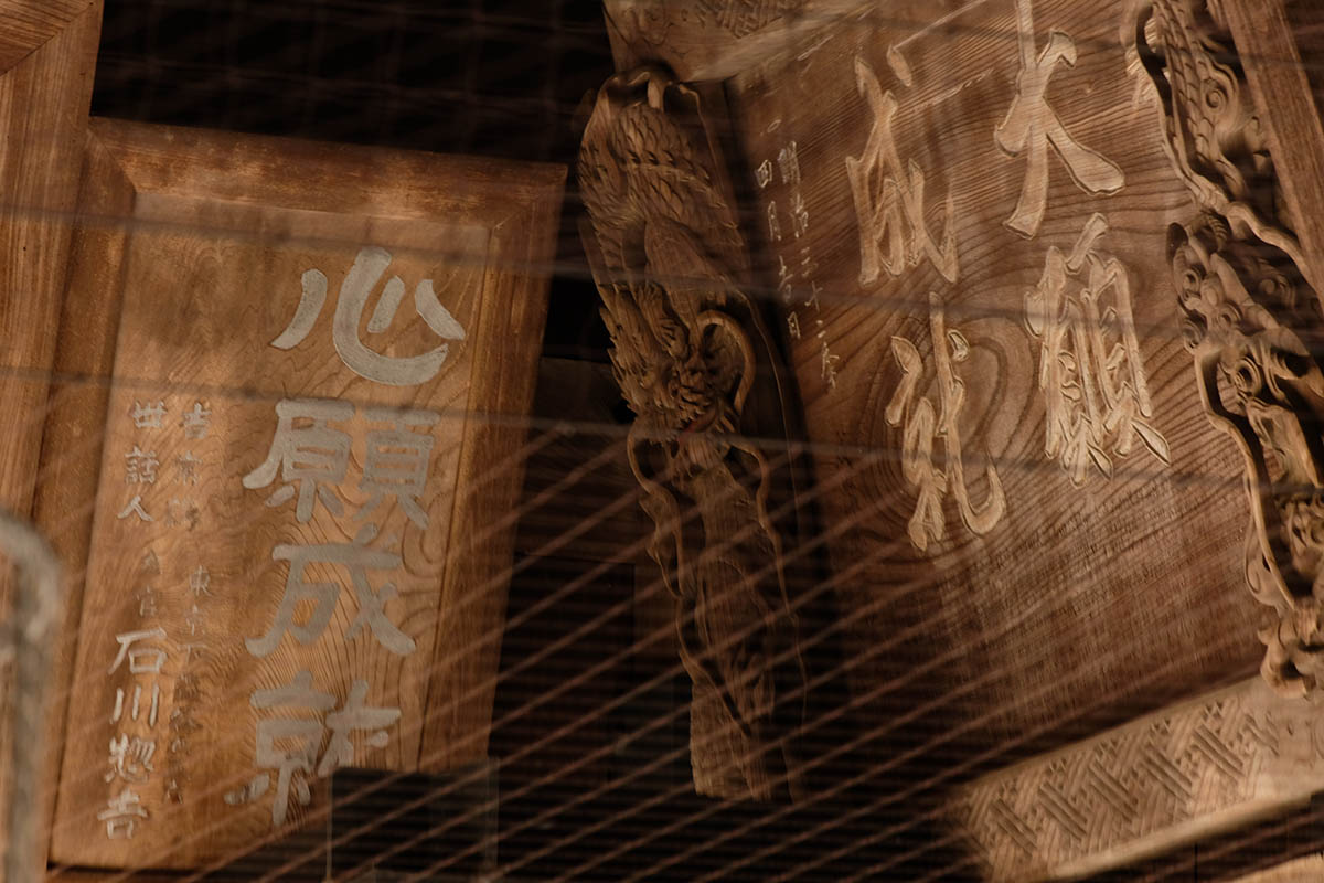 信徒から奉納された額や絵馬などをかける建物で、1861(文久元)年に建立されました。江戸時代に奉納された貴重な絵馬や様々なモチーフの彫刻は、目を見張るものがあります。七代目市川團十郎丈が寄進された石像や地球儀などがあります。