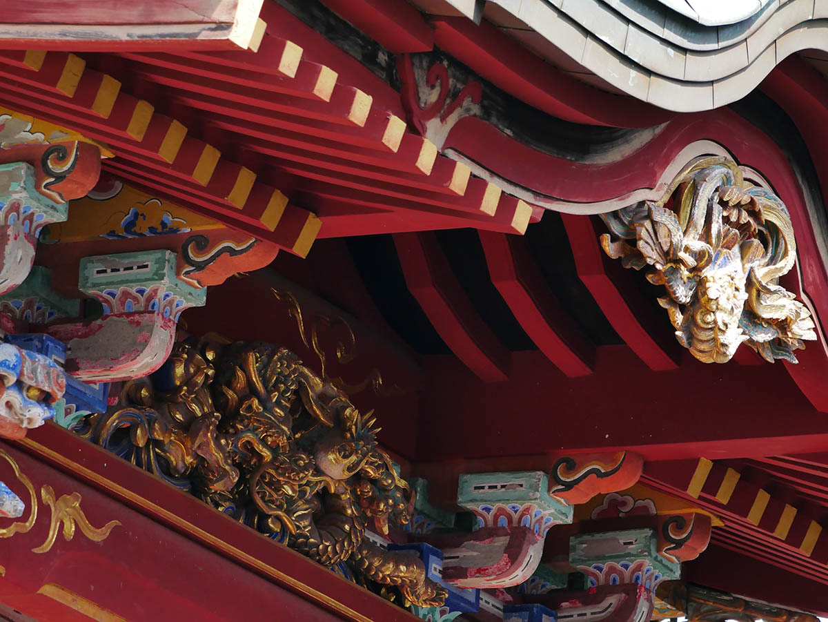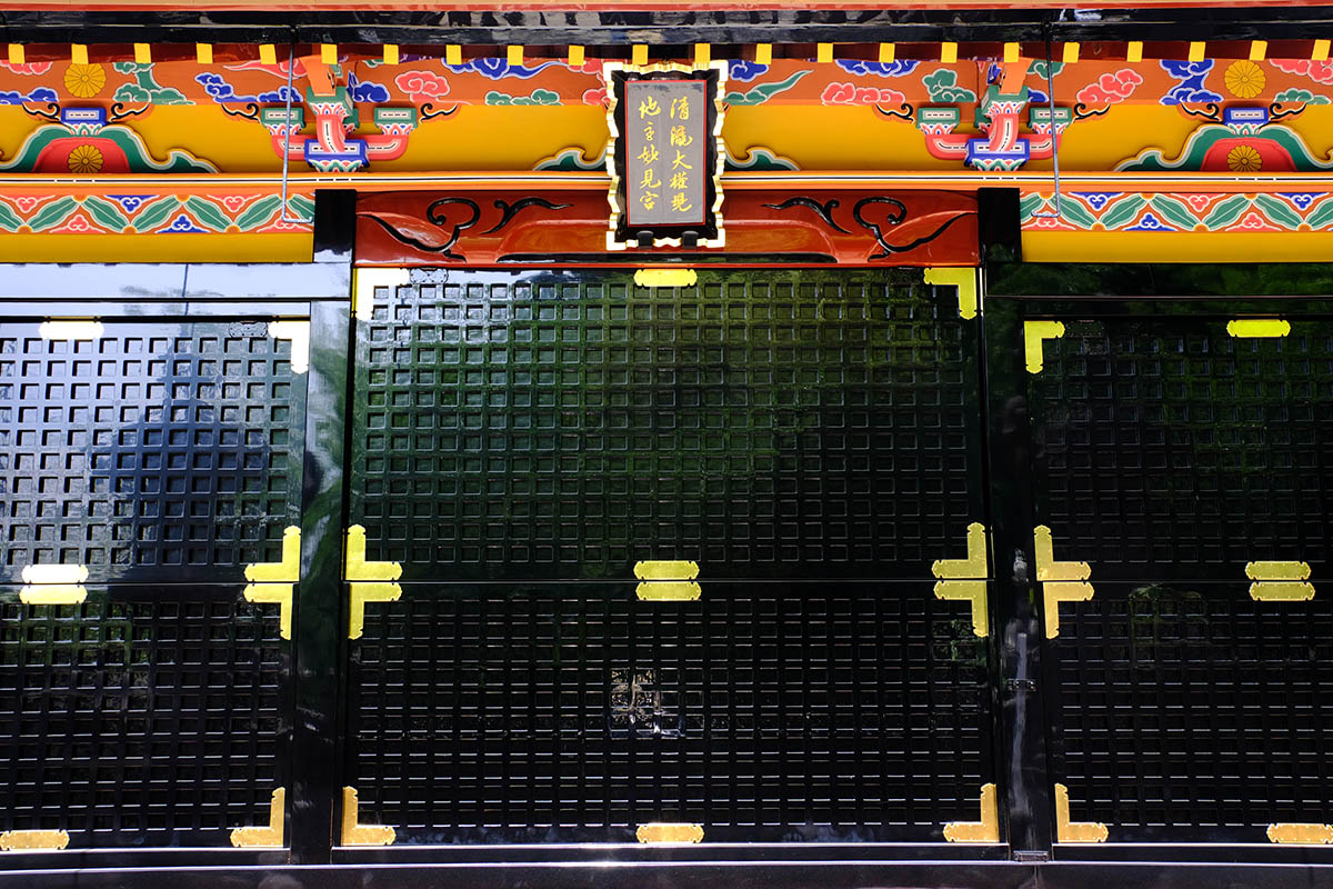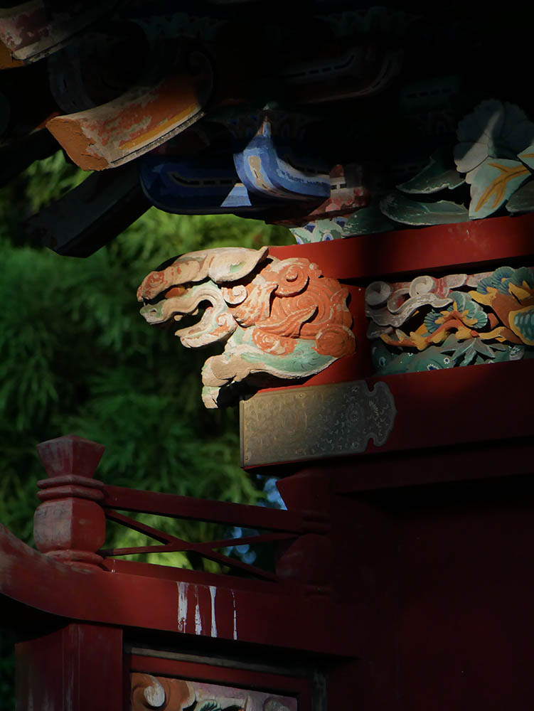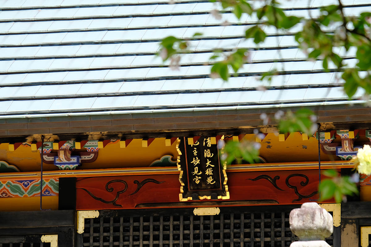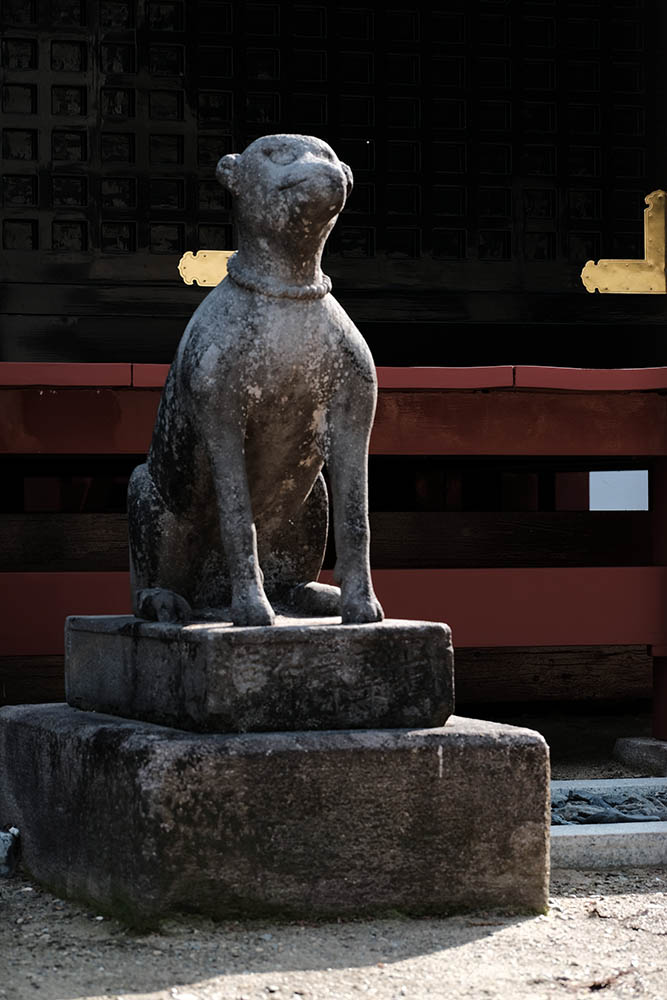 清瀧権現は弘法大師が唐・長安の青龍寺から勧請した密教の守護神です。清龍大権現と共に地主妙見菩薩が祀られ1732 年(享保17 年)建立されました。妙見様は成田山が移ってくる前からの地主神で、犬の狛犬は、成田山で最も古い狛犬です。