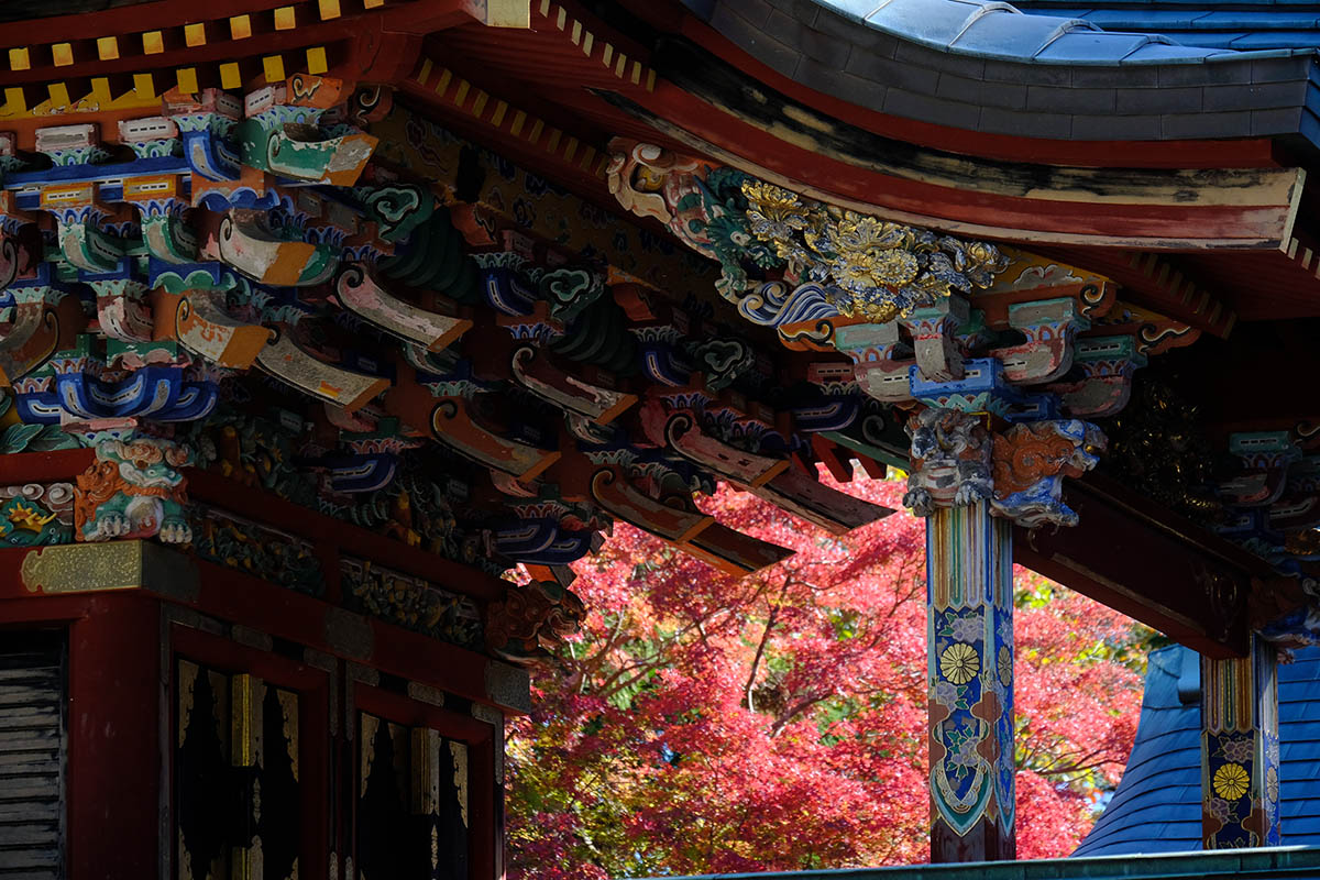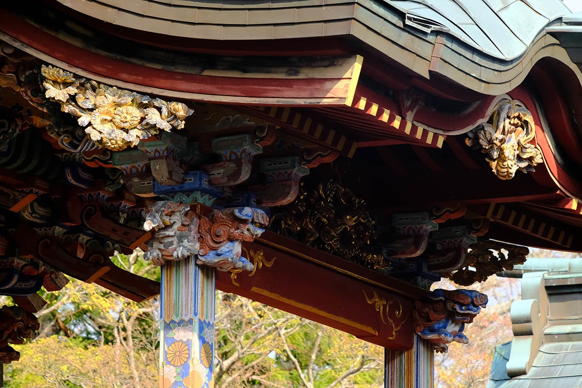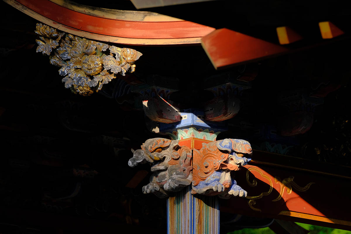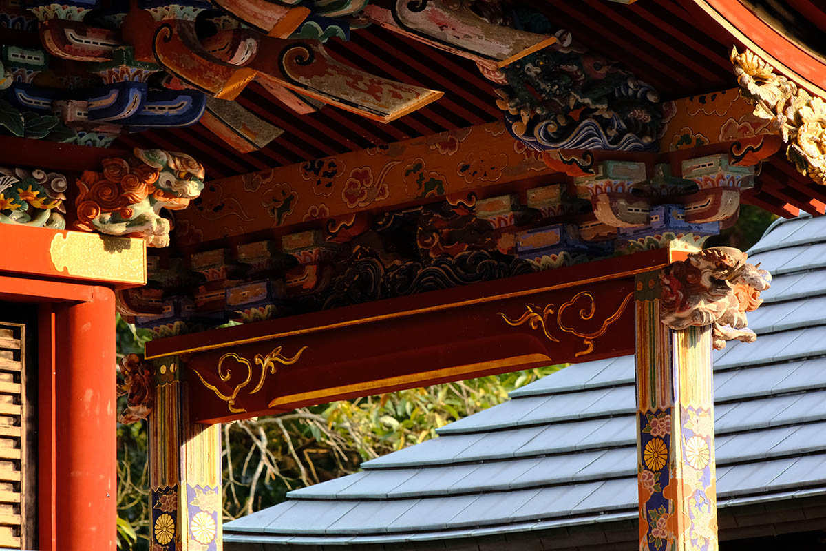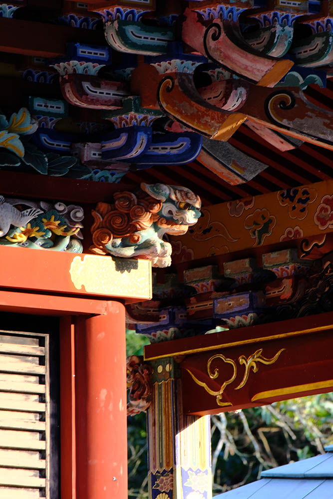 清瀧権現は弘法大師が唐・長安の青龍寺から勧請した密教の守護神です。清龍大権現と共に地主妙見菩薩が祀られ1732 年(享保17 年)建立されました。妙見様は成田山が移ってくる前からの地主神で、犬の狛犬は、成田山で最も古い狛犬です。