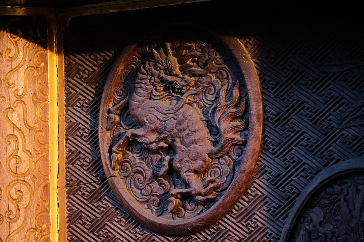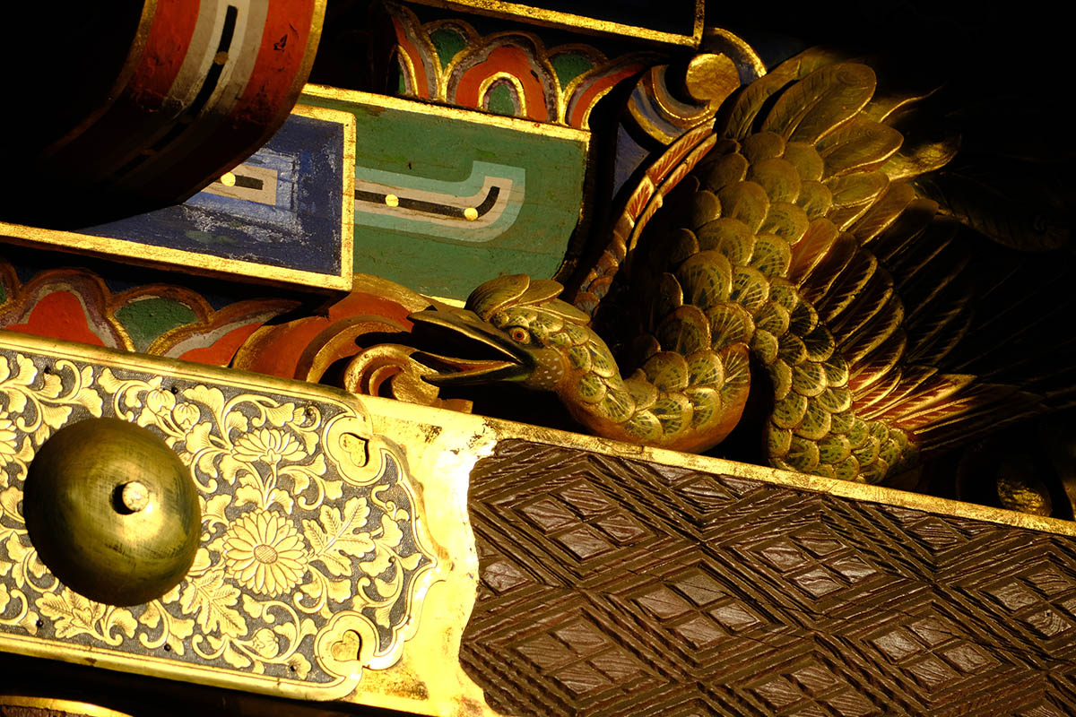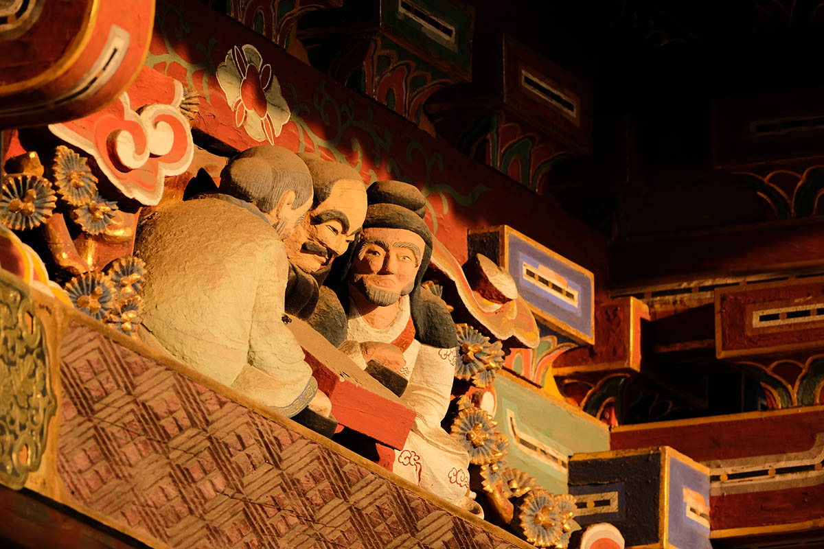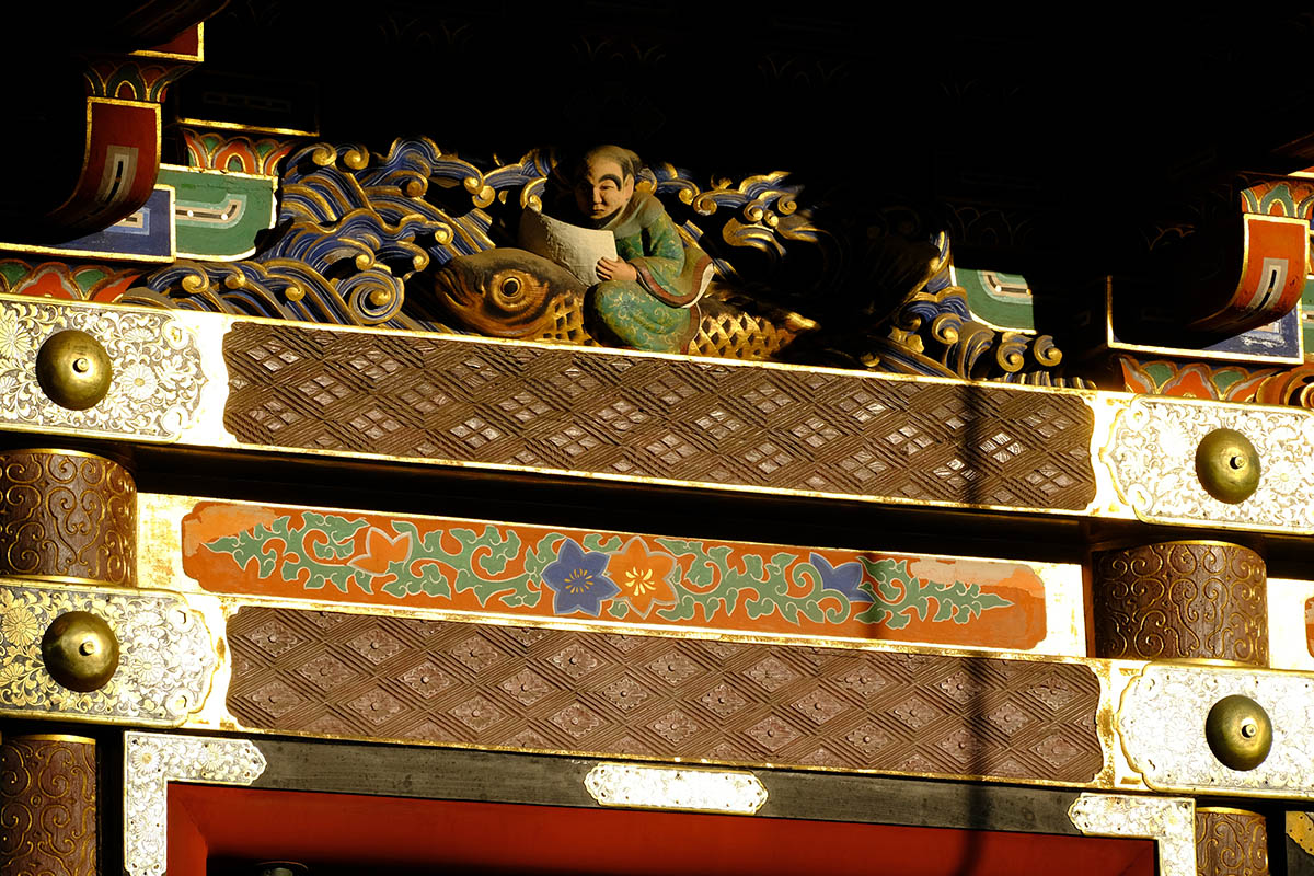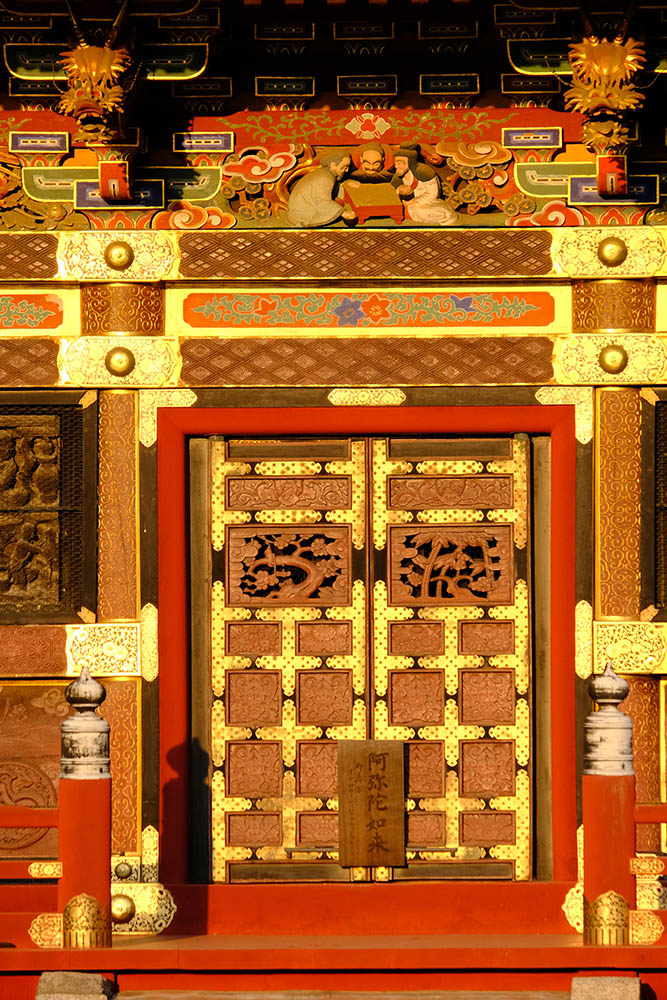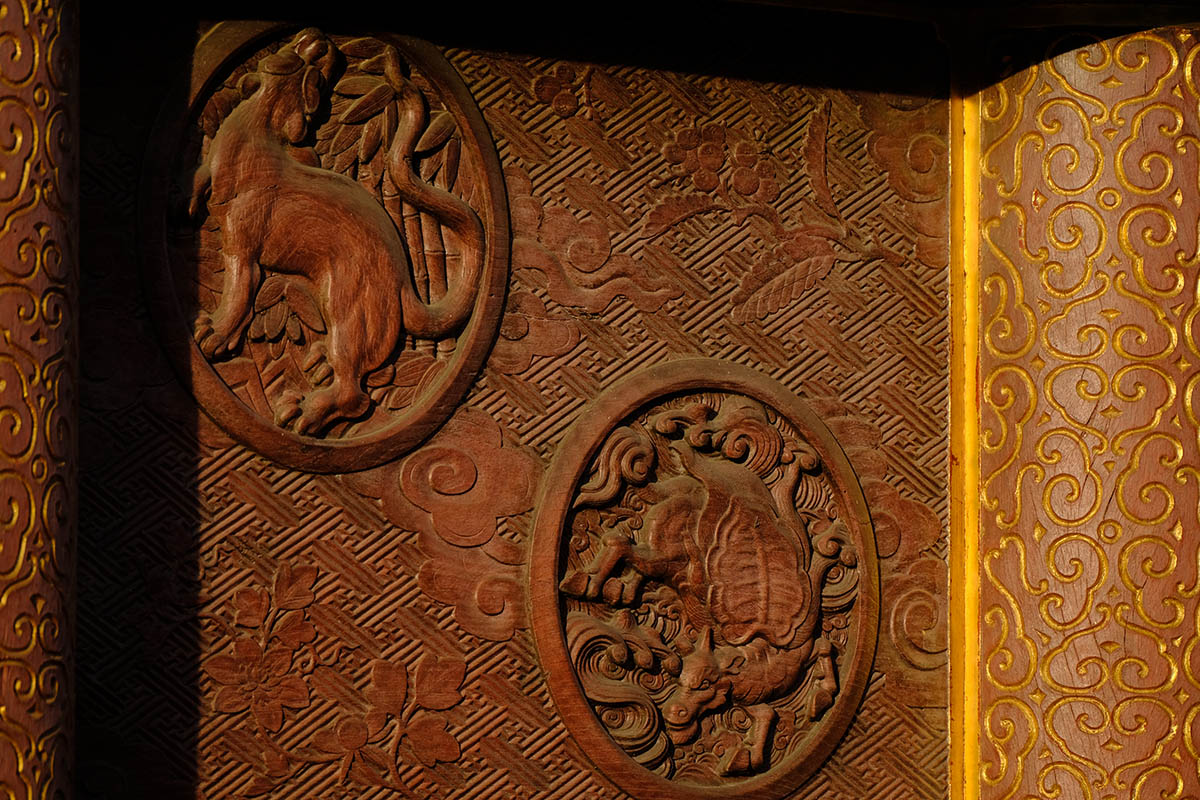 四面の扉の上には「お琴(北側) 囲碁(西側) 琴高仙人(東側) 孟母三遷(南側)」がはめ込まれています