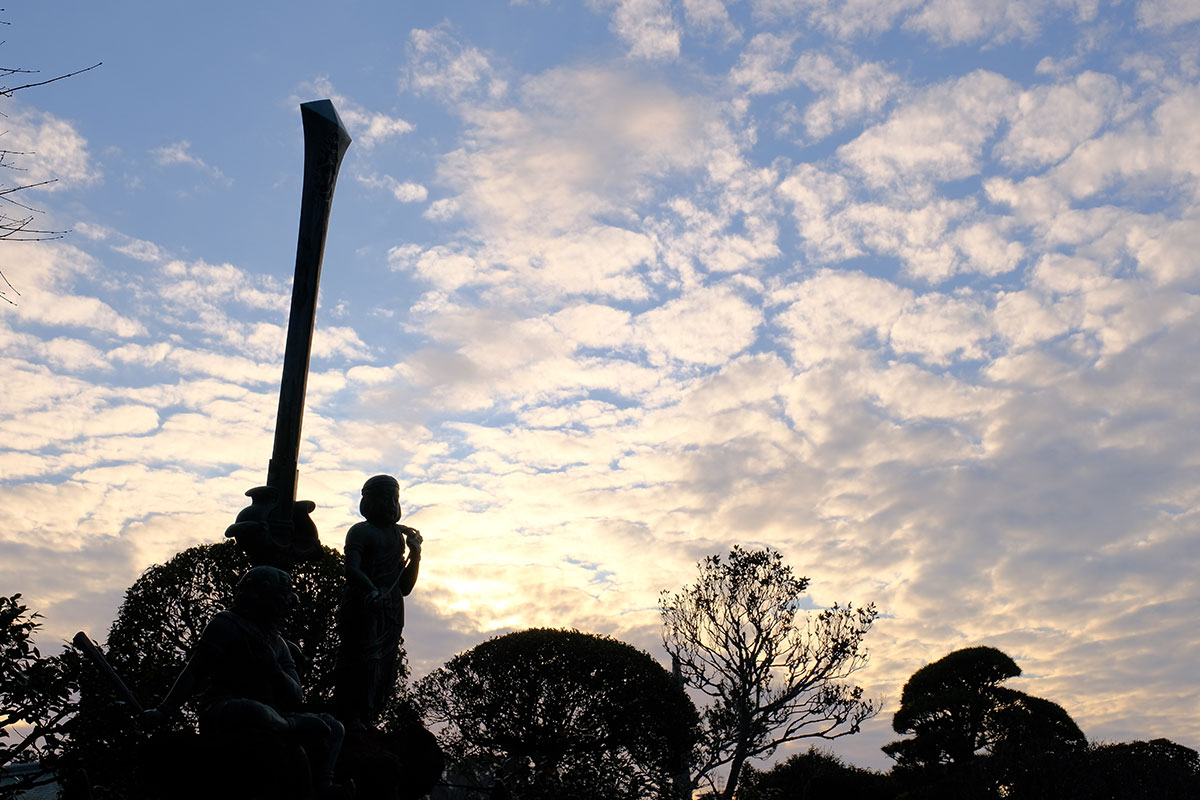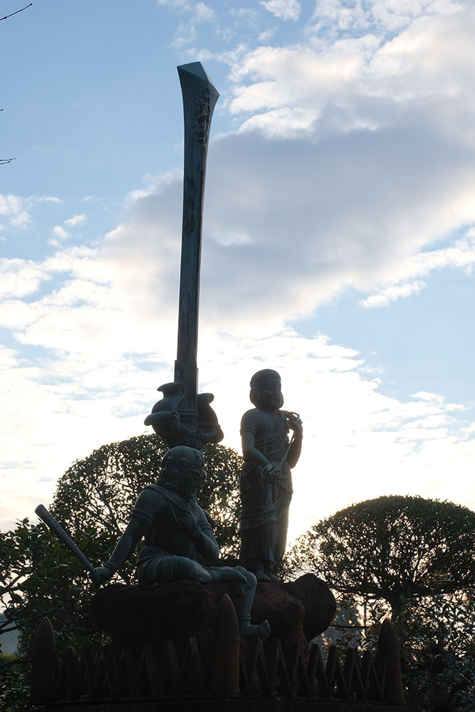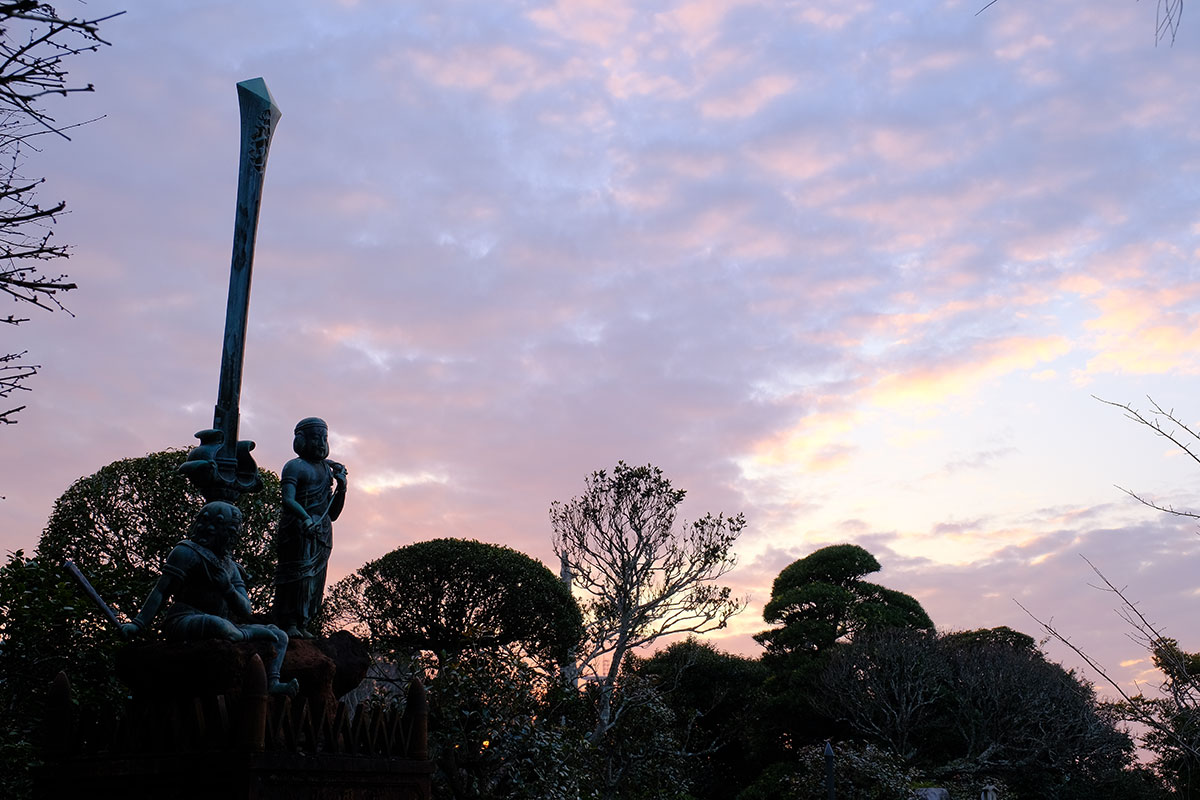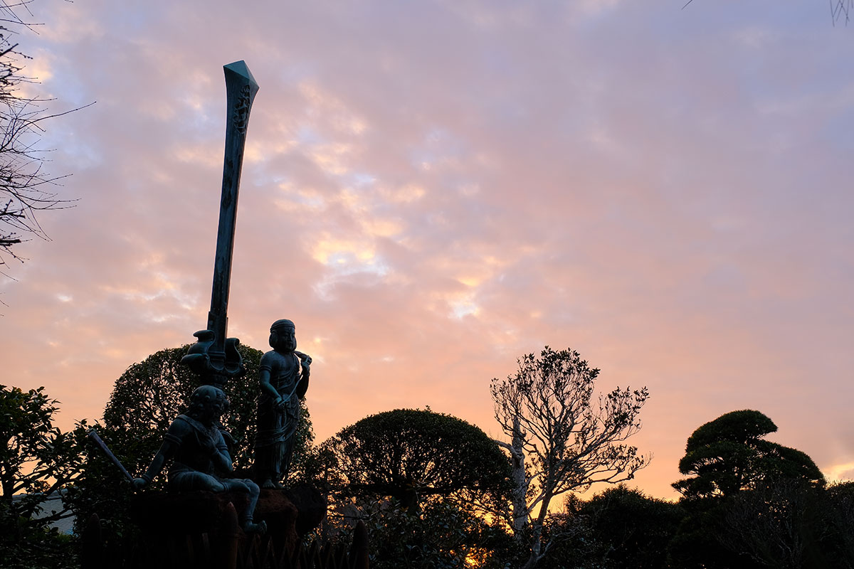 すると、不動利剣と夕陽が次々と表情を変えて一日の終わりをドラマにしてくれました。