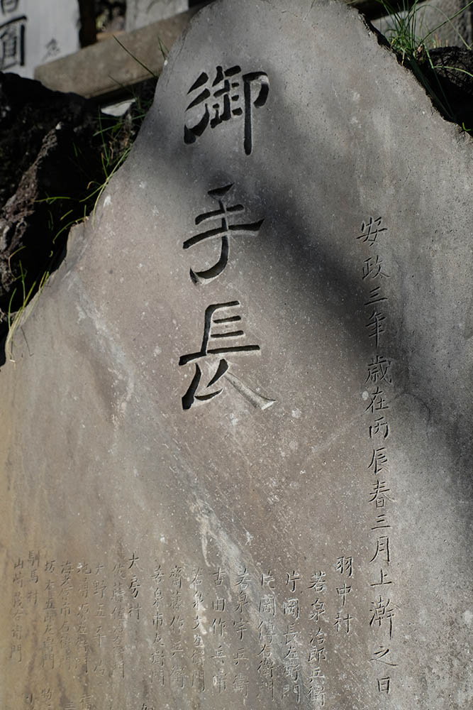 奉納額や石碑に「永代御膳料」や「永代護摩供」がありますが、「お手長」と書かれたものも多くあります。手長、足長の巨人伝説が各地にあって、延喜式の名神大社に壱岐国一宮の「天手長尾神社」があります。長野県諏訪市にも「手長神社」がありますが、奉納としては、高々と手を差し出して捧げる様からの表現でしょうか。幕末から明治にかけてのものが多く見られます。