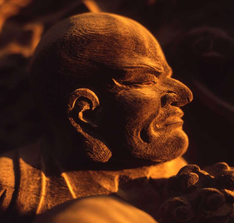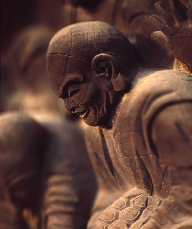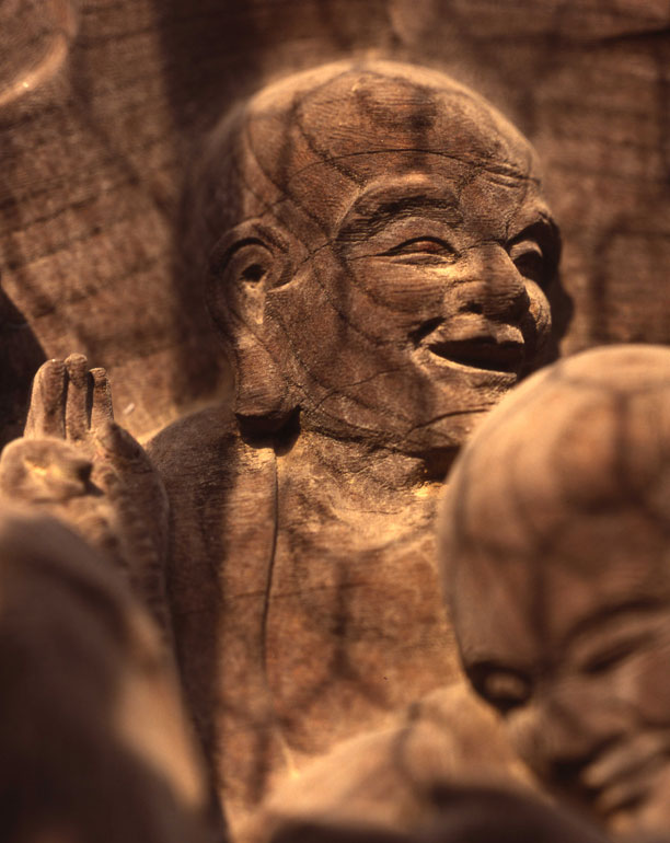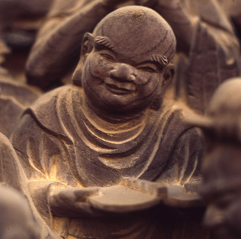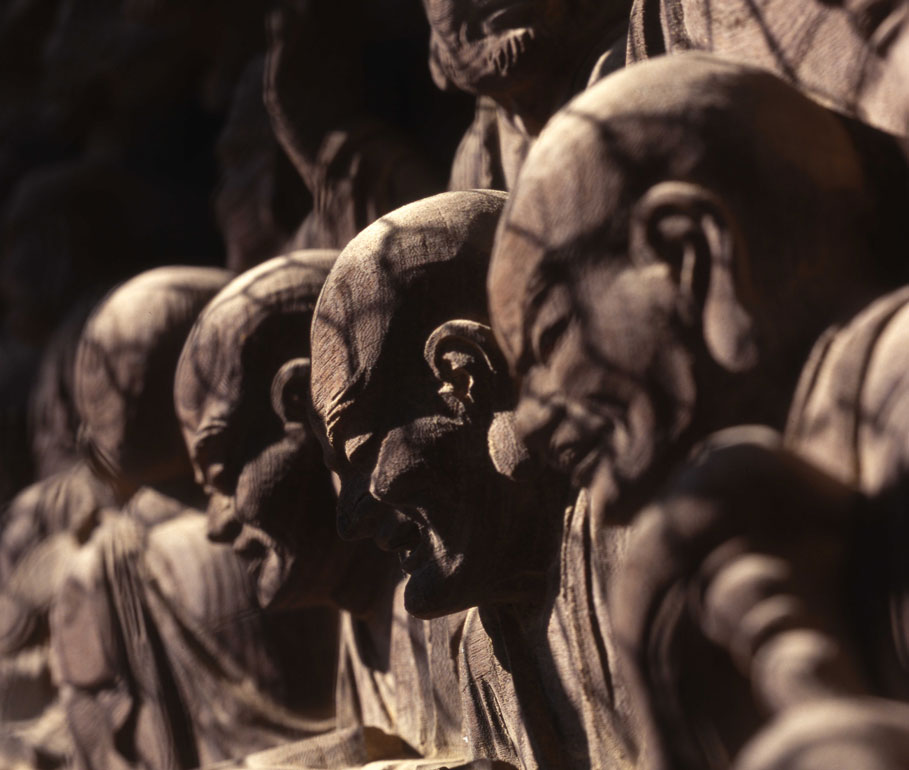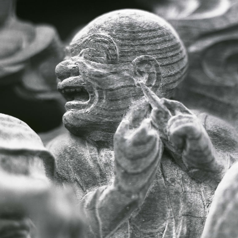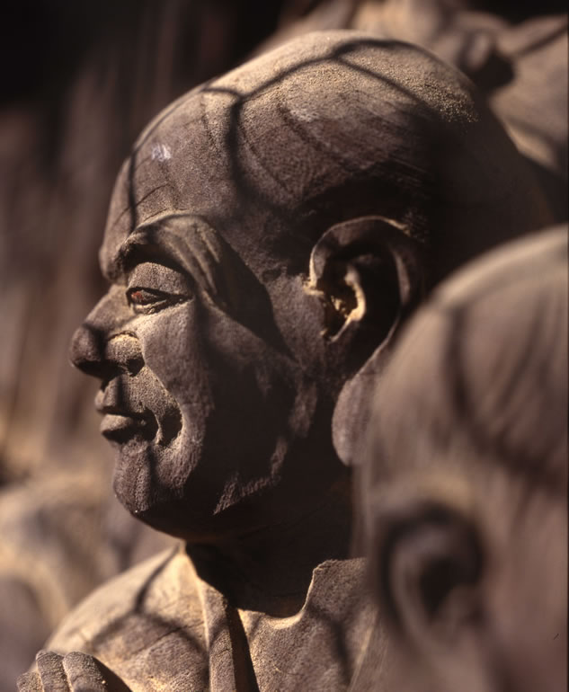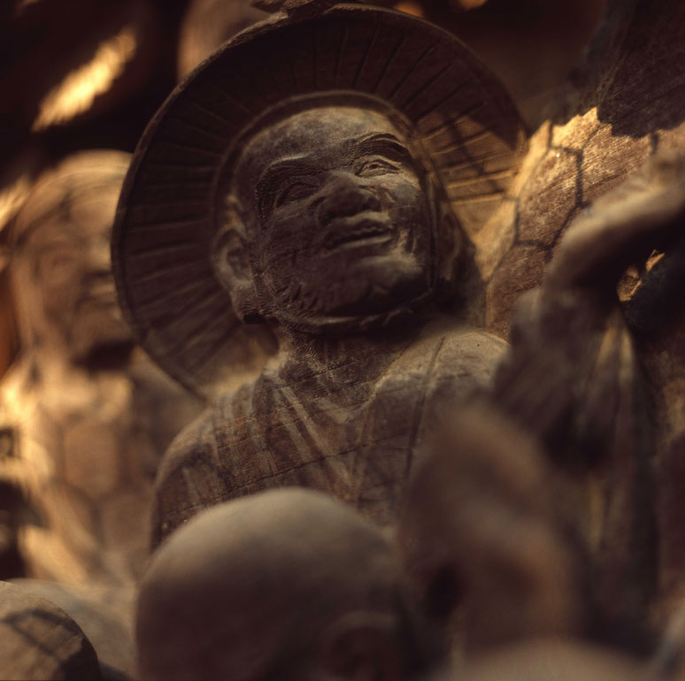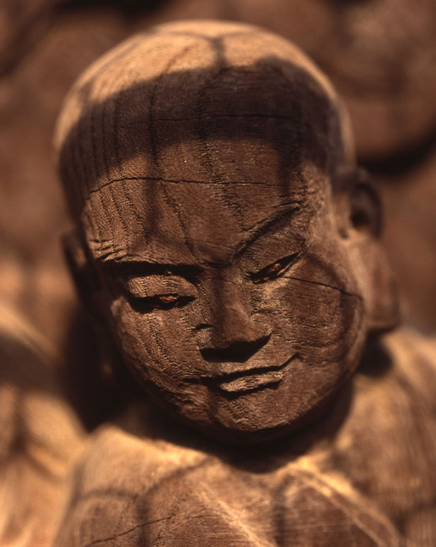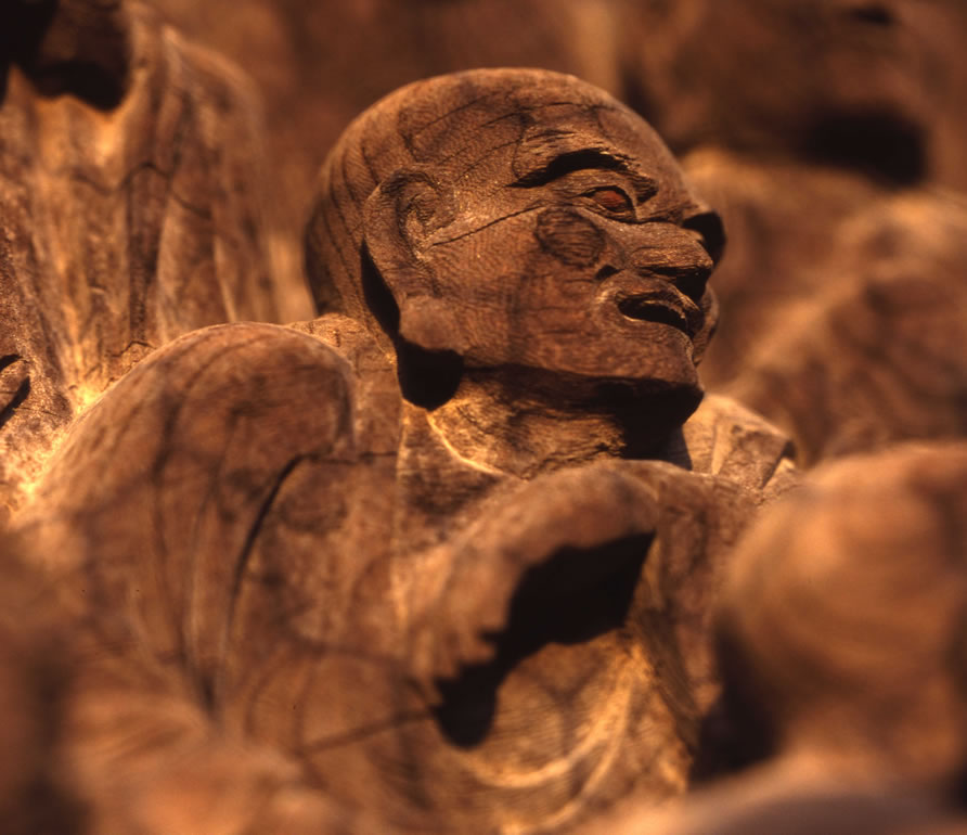 一枚の板に沢山の羅漢様を、表情豊かに彫り込んだ江戸仏師の技をご覧ください。