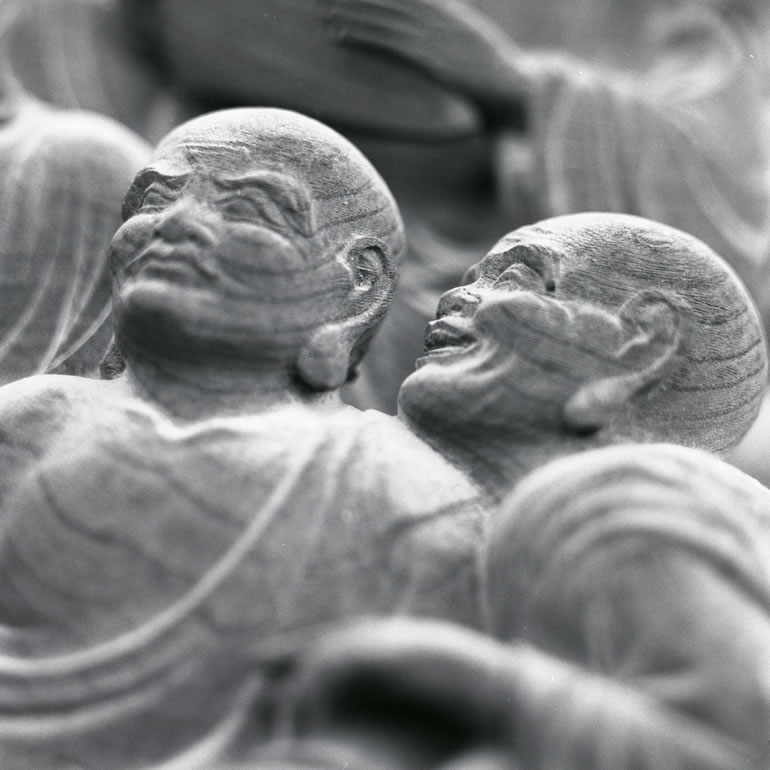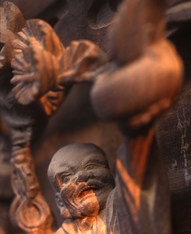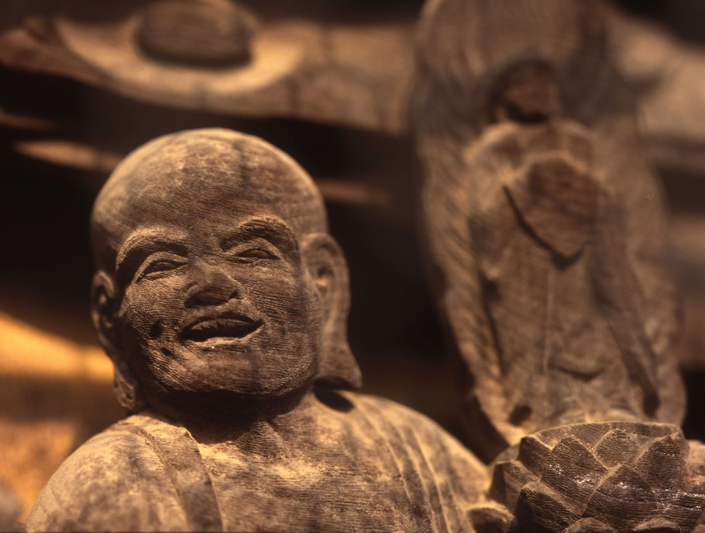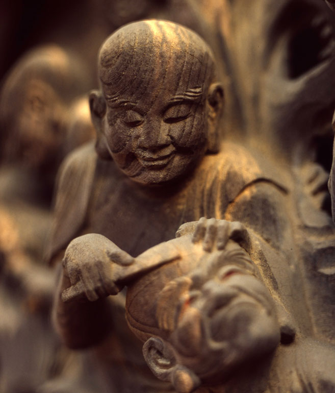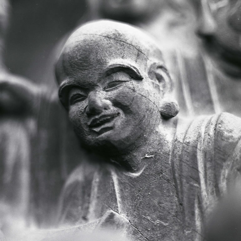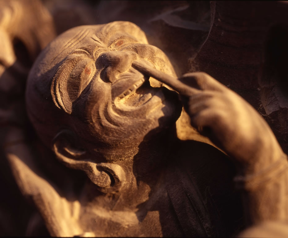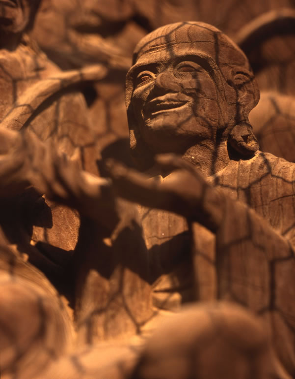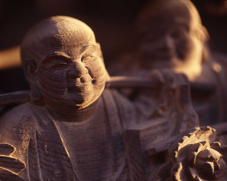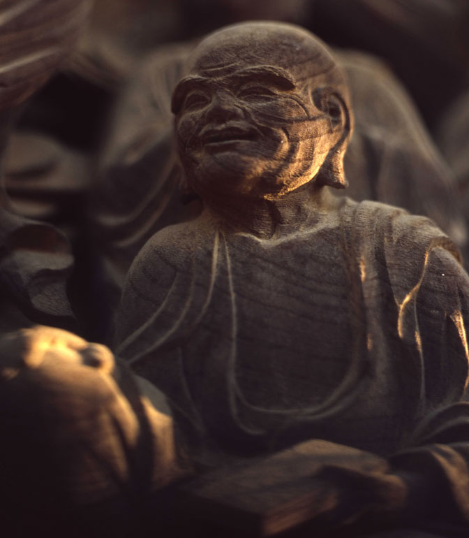 一枚の板に沢山の羅漢様を、表情豊かに彫り込んだ江戸仏師の技をご覧ください。