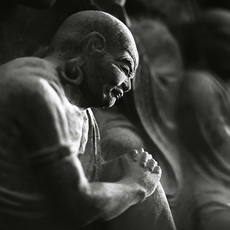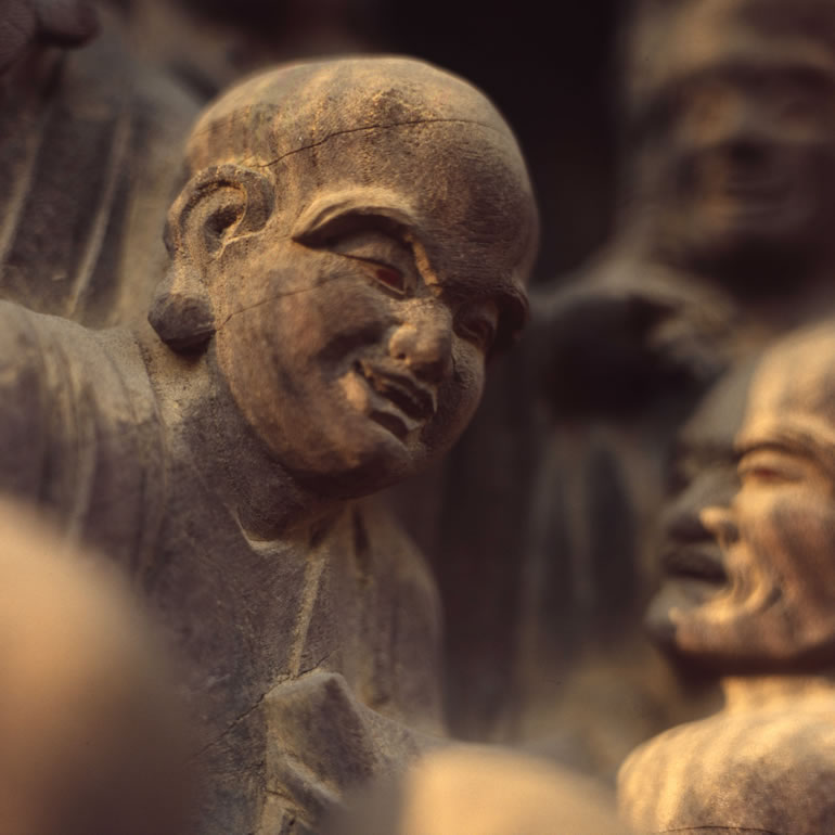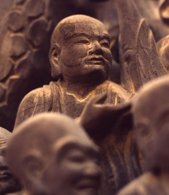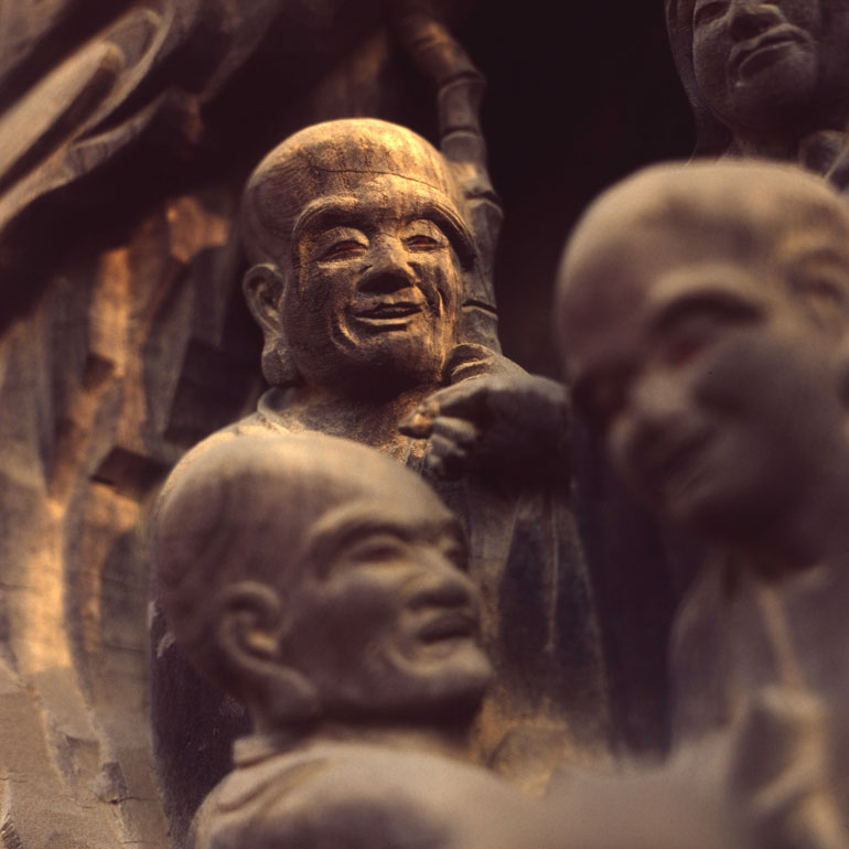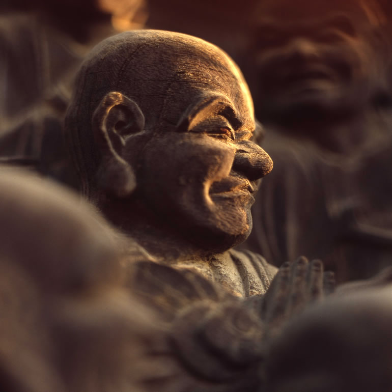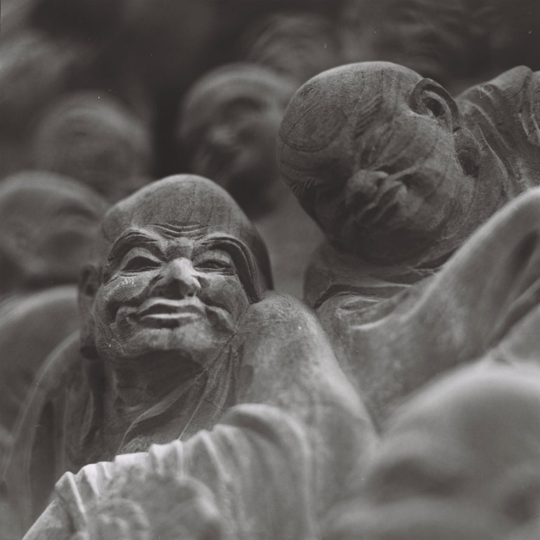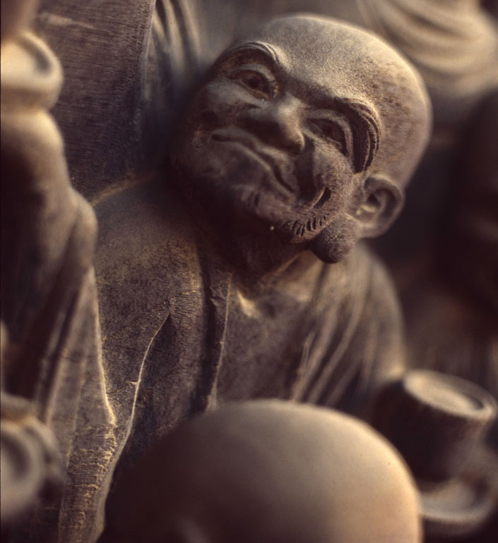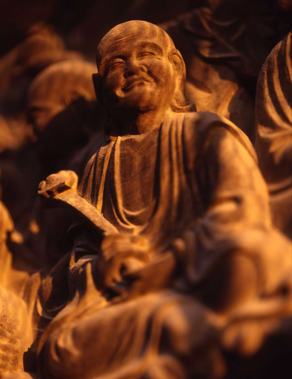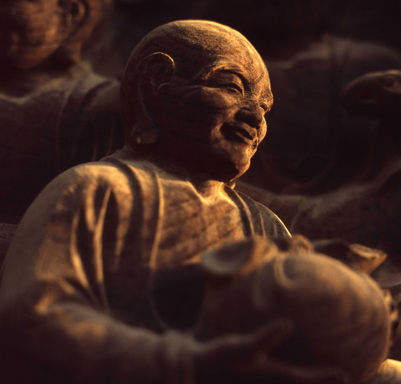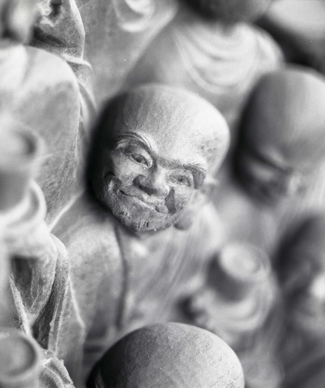 一枚の板に沢山の羅漢様を、表情豊かに彫り込んだ江戸仏師の技をご覧ください。