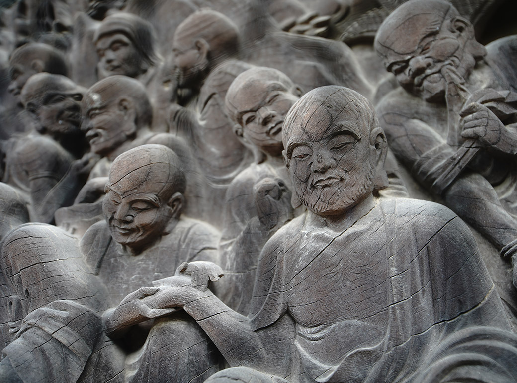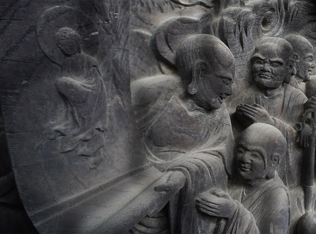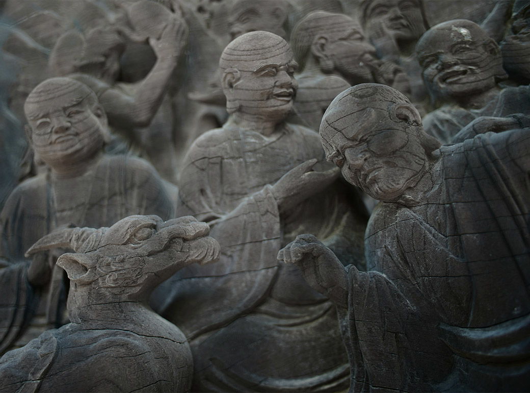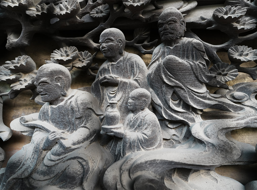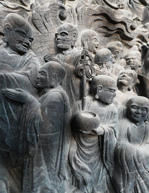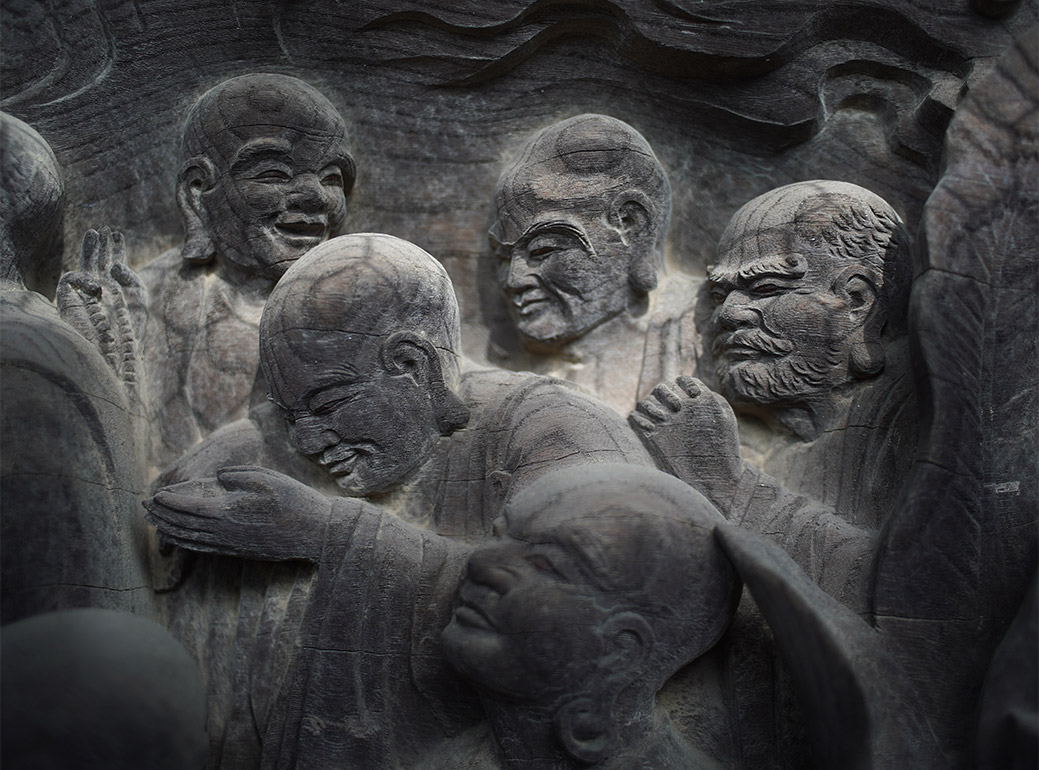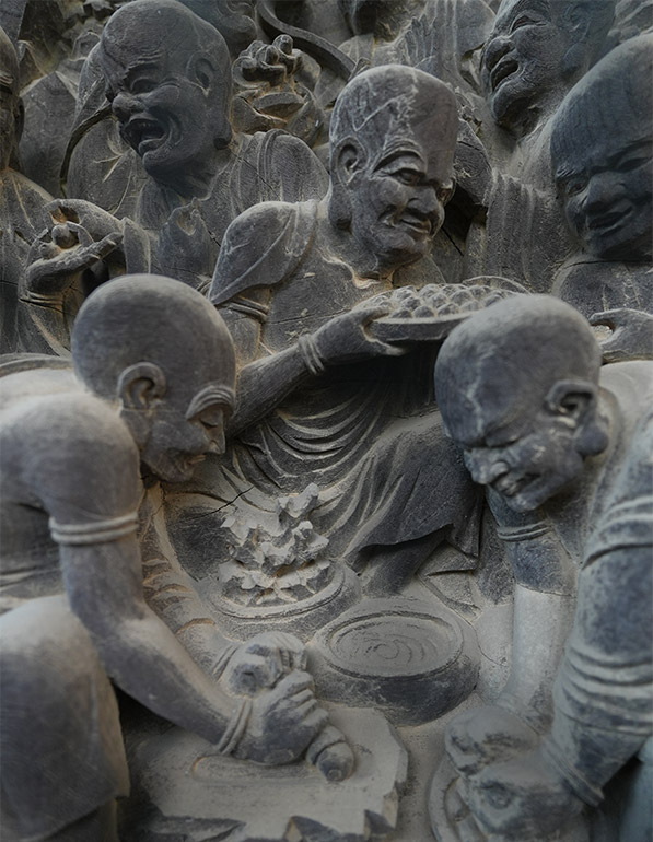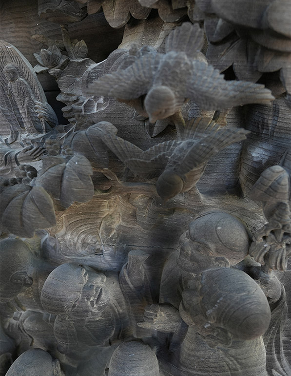 広角レンズとアオリ撮影を更に進め、フラットな光線での群像としての羅漢様の魅力を追い求めました。また、超広角レンズによる「松本良山の彫刻技術の素晴らしさに迫る」という視点からの撮影を加えて構成しました。