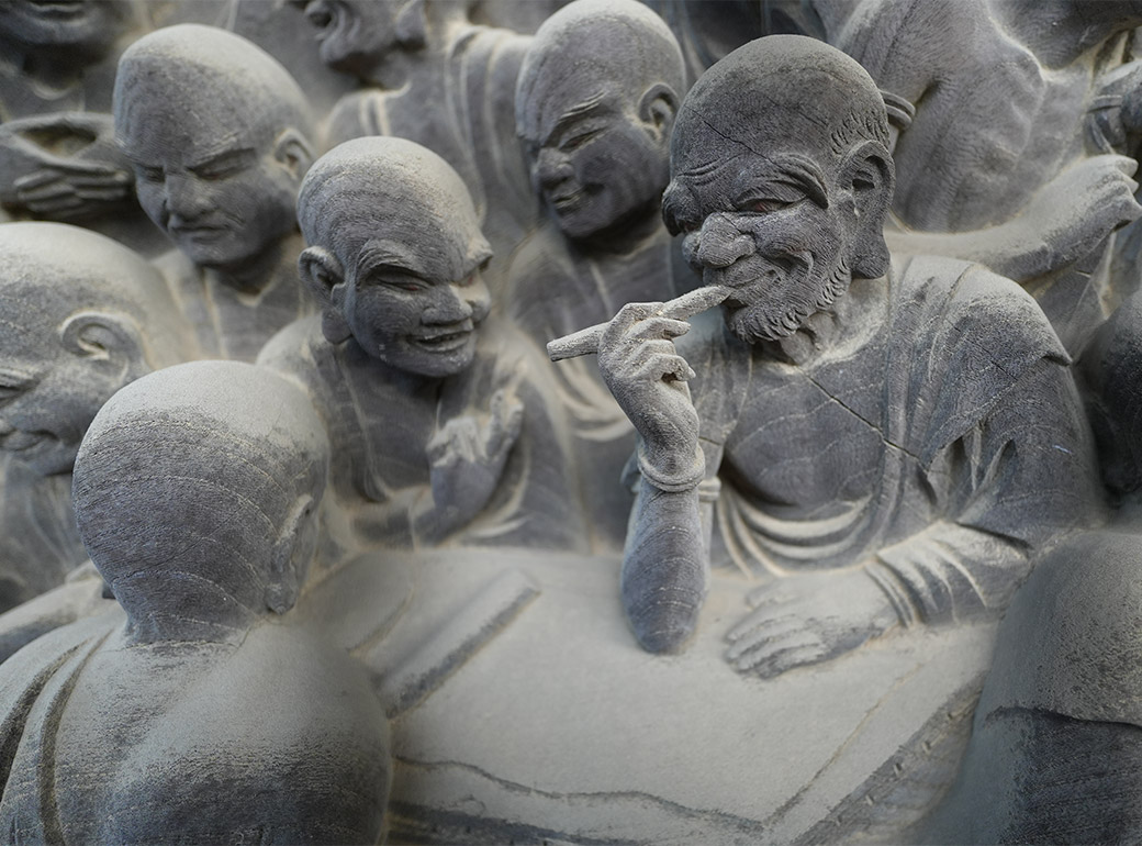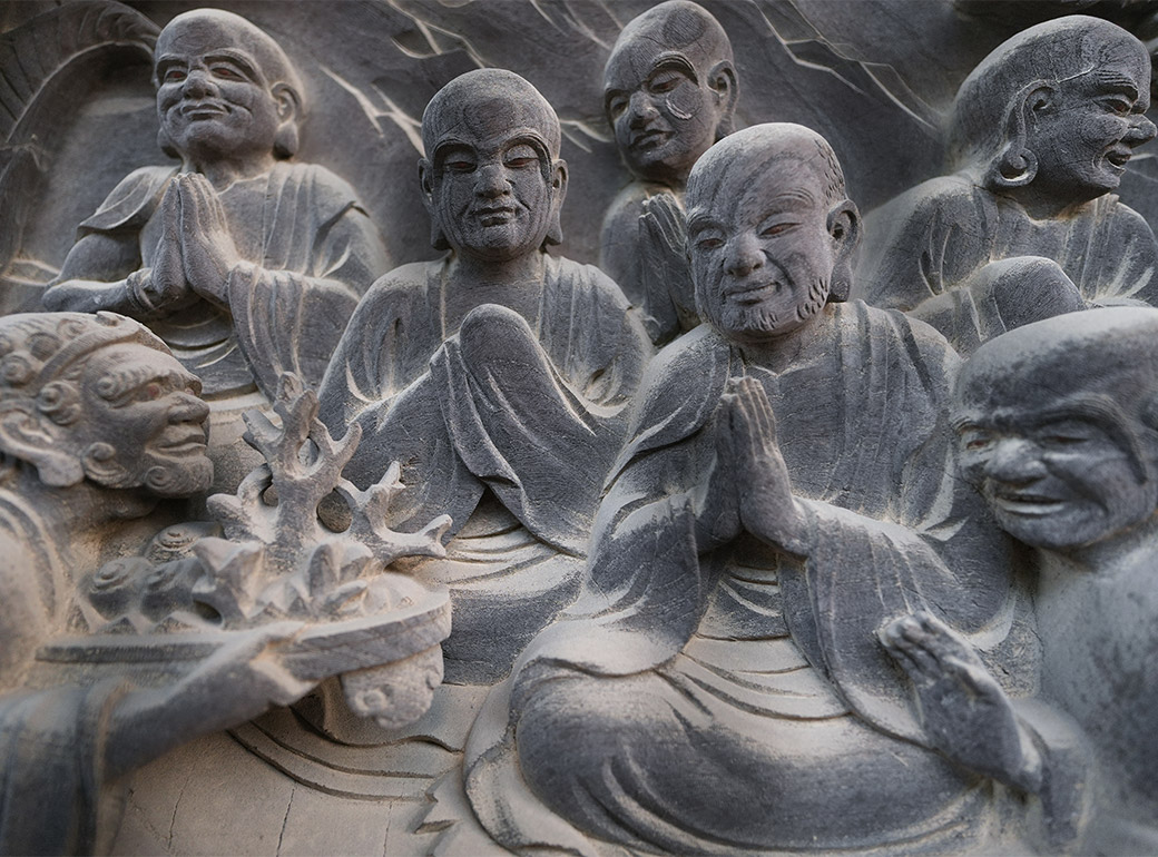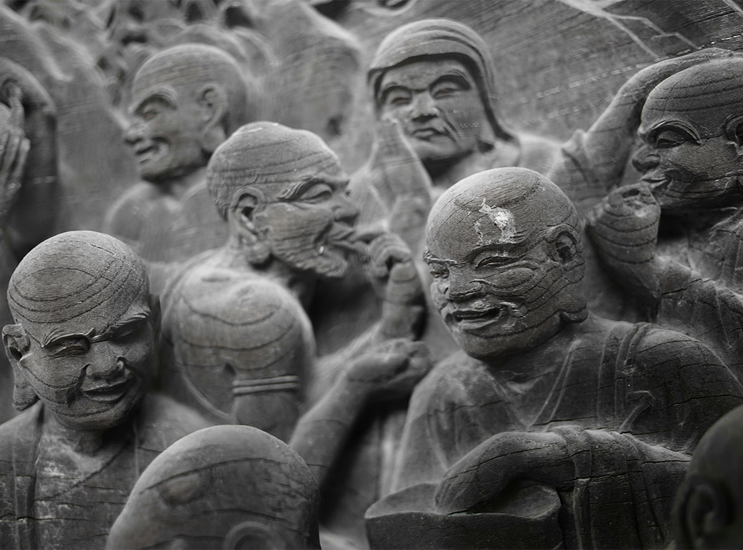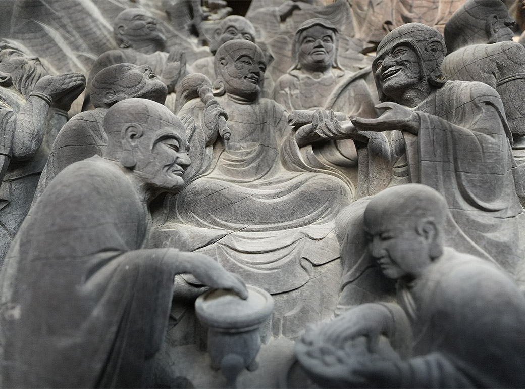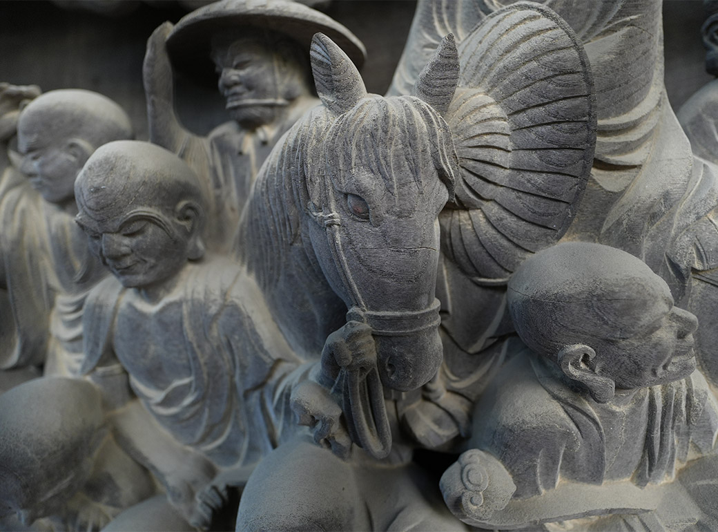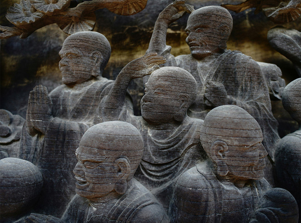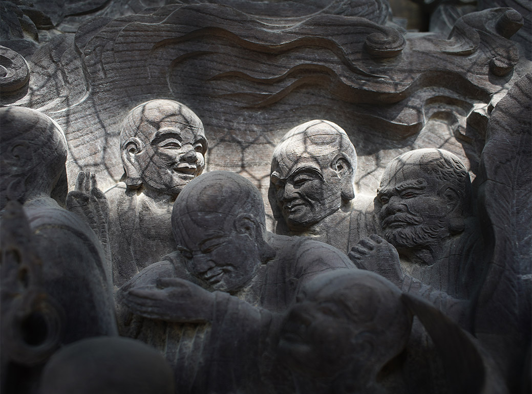 広角レンズとアオリ撮影を更に進め、フラットな光線での群像としての羅漢様の魅力を追い求めました。また、超広角レンズによる「松本良山の彫刻技術の素晴らしさに迫る」という視点からの撮影を加えて構成しました。